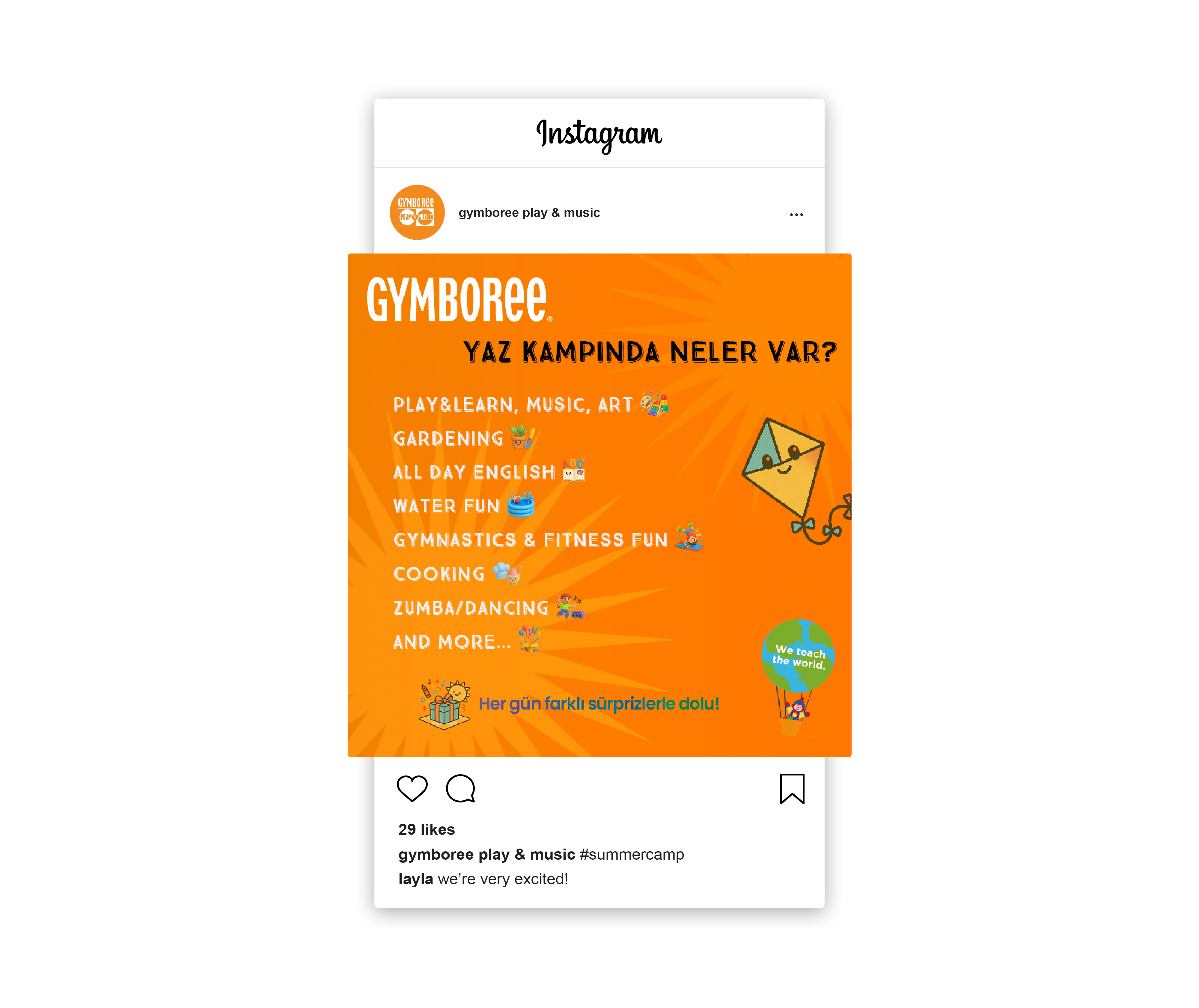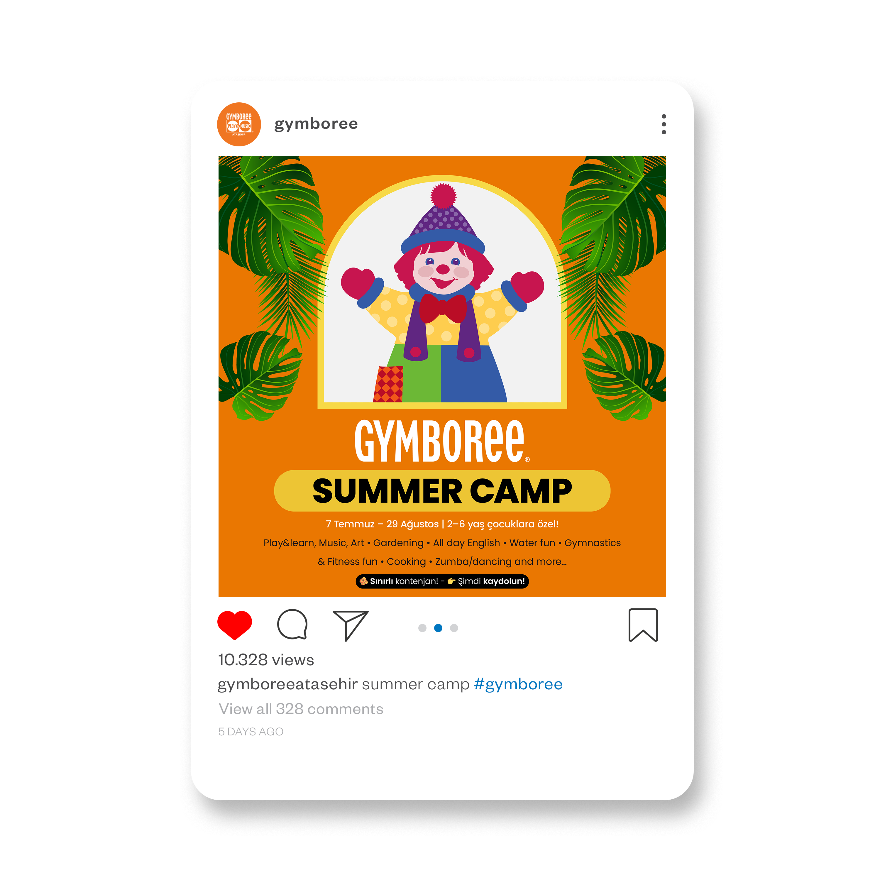 The client (Gymboree Play & Music Atasehir & Cekmekoy) needed a Instagram campaign to promote their summer camp for kids aged 2–6. The goal was to highlight fun and educational activities like music, art, water play, gardening, cooking, and all-day English; and drive early sign-ups.